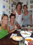 From left: Emma, Nuria, Begona & me, with all the favourite South American dinner staples – chips, jamon, cheese, salad and of course, vino tinto.