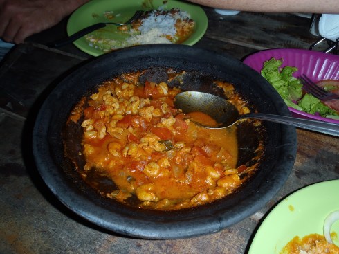 By night we treat ourselves to cheap meals out; we try moqueca, a traditional Brazilian dish similar to a seafood stew, whilst overlooking the harbour…