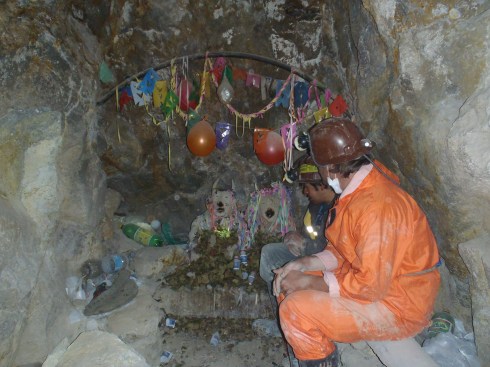 Most miners believe in a god in heaven, and thus deduce that there must also be a devil beneath the earth, which cannot be far from the environment in which they work. They reason that the devil himself must own the minerals they’re dynamiting and digging from the earth, so to appease ‘Tio’, they set up ceramic figures in a place of honour and make daily offerings. Towards the end of our tour, we stop at one such place.