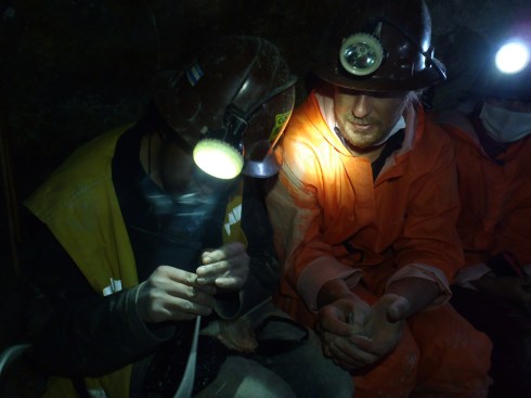 We scramble and crawl in low, narrow, dusty, muddy shafts and climb rickety ladders. Working practices are medieval, safety provisions non-existent (we walk across multiple unsecured planks, an 80m drop either side). The shafts are unventilated, and even with our masks on, the fumes are intoxicating…