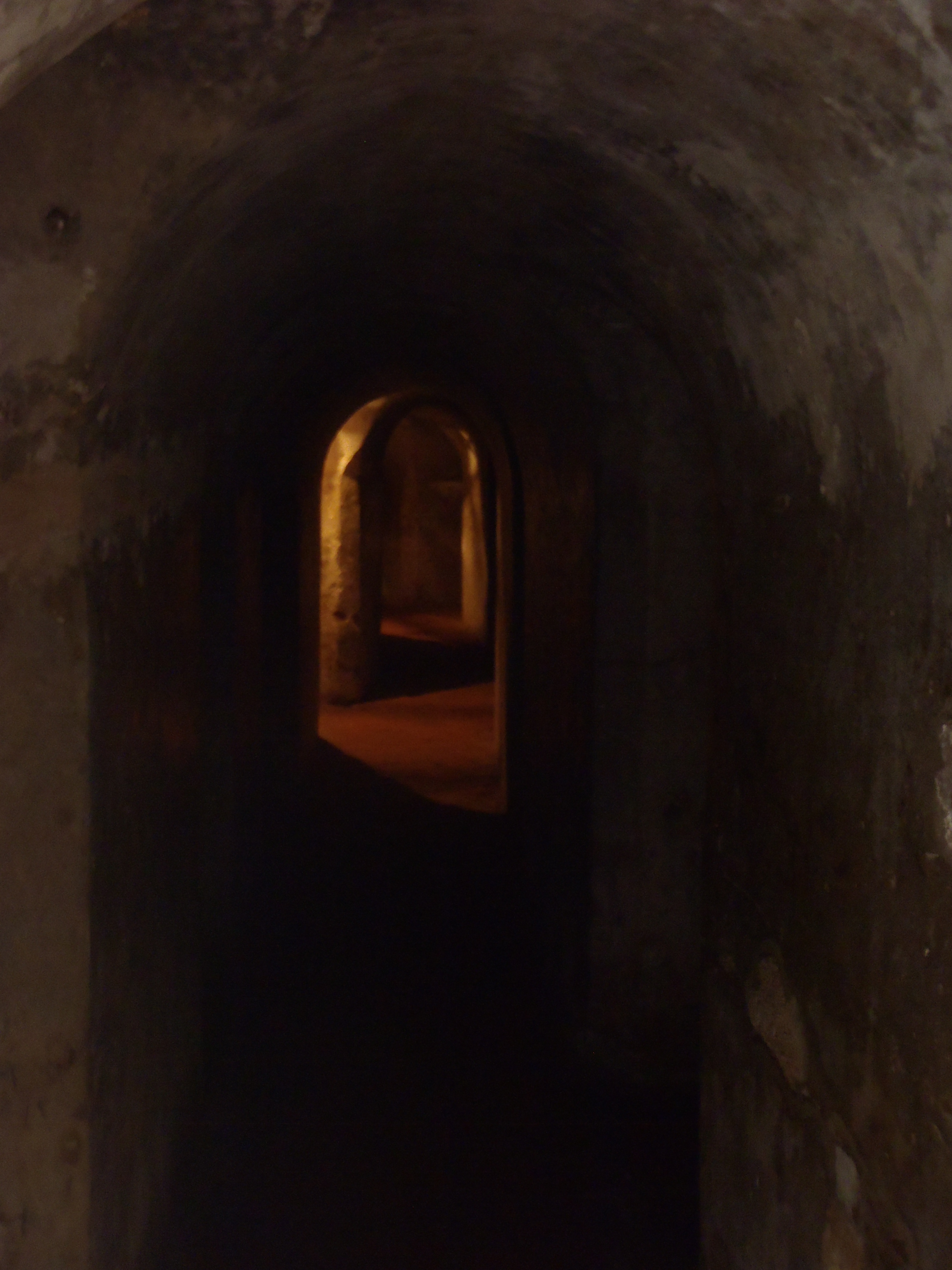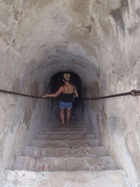 A complex system of tunnels connected strategic points of the fortress to distribute provisions and to facilitate evacuation. Not normally one to get squeamish in small places, as we travel down, down, down along the increasingly tiny, tourist-laden corridors, the air becomes a little too thick for me and I scurry out leaving MC to explore in peace.
