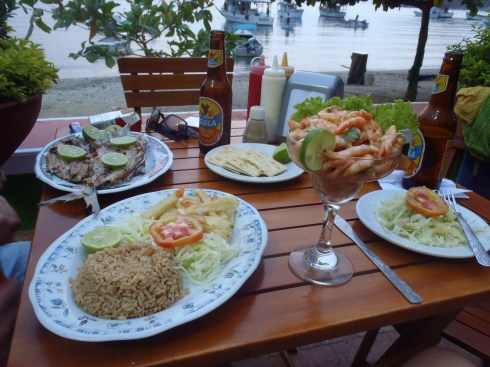We’ve got lucky with the accommodation. The family – Antonio, Denise and their 5 children – are the happiest, most beautiful, funny, kind people. Denise offers to buy fish from the local fisherman for us, cooking and serving it with delicious platanos – made from plantains (look like big bananas), they’re squashed flat, fried and served as an accompaniment to dishes like bread is in Western countries. Suddenly our dreaded ham and cheese salads have turned into the most delicious banquet!