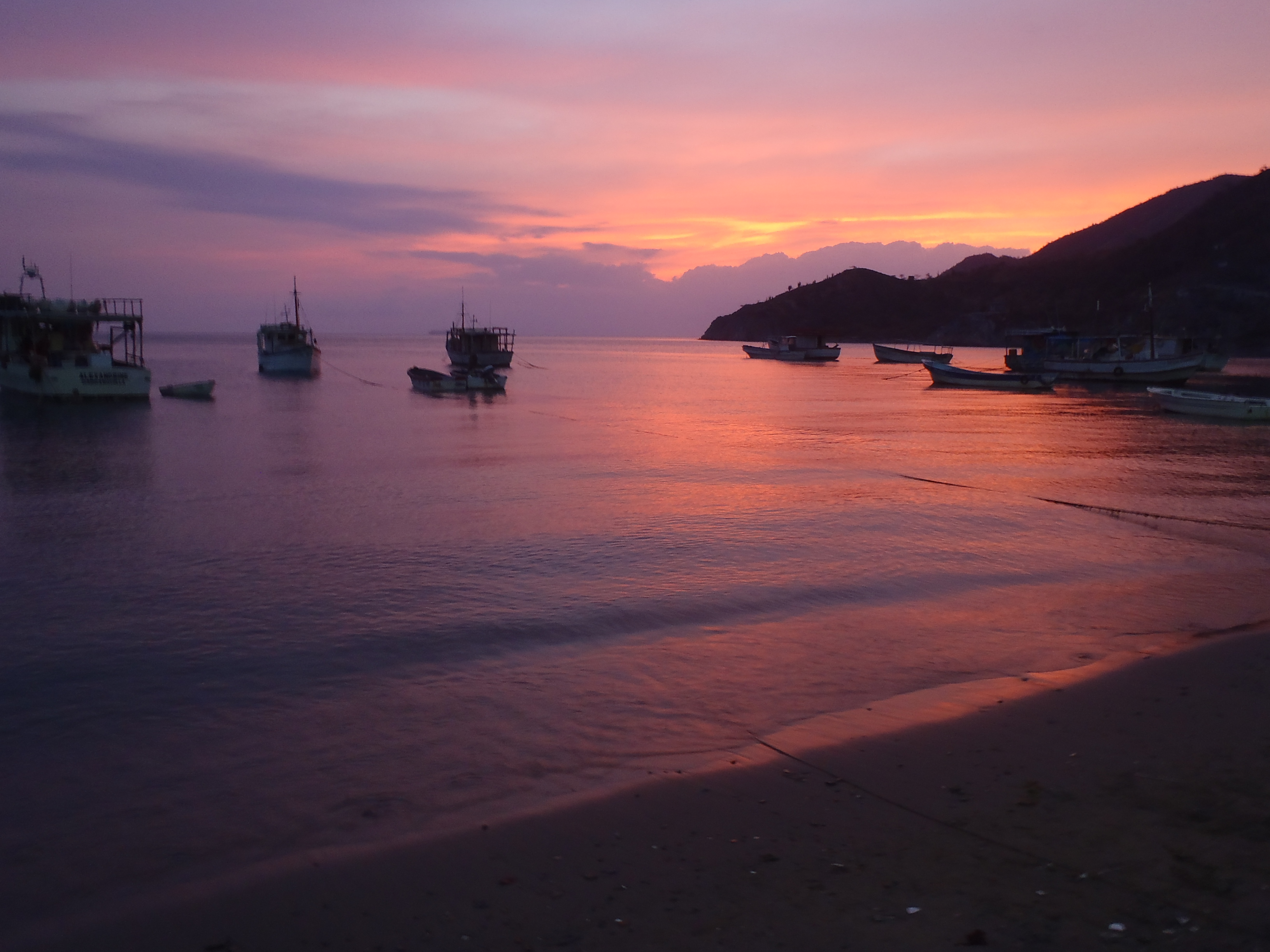 The following day, fuelled up on the always necessary omelette and coffee, we embark for Taganga, a small fishing village set in a horseshoe-shaped bay, 5km northeast of busy Santa Marta. We were a little surprised when we rang the doorbell of Hostel Tropical Maison, for it to be answered by John, a white-haired 79 year-old. Turns out not quite a hostel, only a couple of rooms rented in john’s house, but we respectfully listened as we were given an intimate tour of his kitchen and an introduction to the cats before being shown to our basic, but impeccably clean, room (“Please don’t put your laptop on the bed”, says John politely. “They melt and stain the sheets.” …. Sorry, whaatt?).