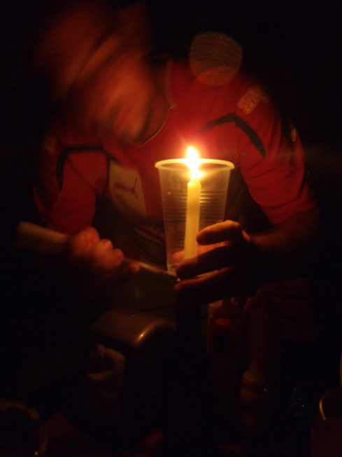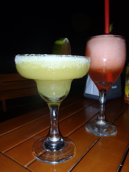 We don’t even bother looking at the menu anymore as the waiter once again whisks MC off to have a look at the day’s latest catch and decide what’s for dinner. This last evening, MC scurries back, all smiles and says, “Langosto, Kelly, langosto”. Lobster. At 1.5kgs, it’s a delicious juicy one and for just $20 per person with all the salad, rice and papas fritas you can eat, it is too good to turn down. After cocktails and a candlelit dinner (due to the storm cutting the town’s power), we retire to John’s for one of our now-regular late-night chats.