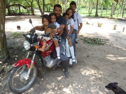 Again, too soon, too soon, and it’s time to leave. Antonio returns on the bike picking the kids up from school (for truth’s sake, the smallest baby in the very front was placed on for the photo, but the rest all rode in from their day at school like this)…